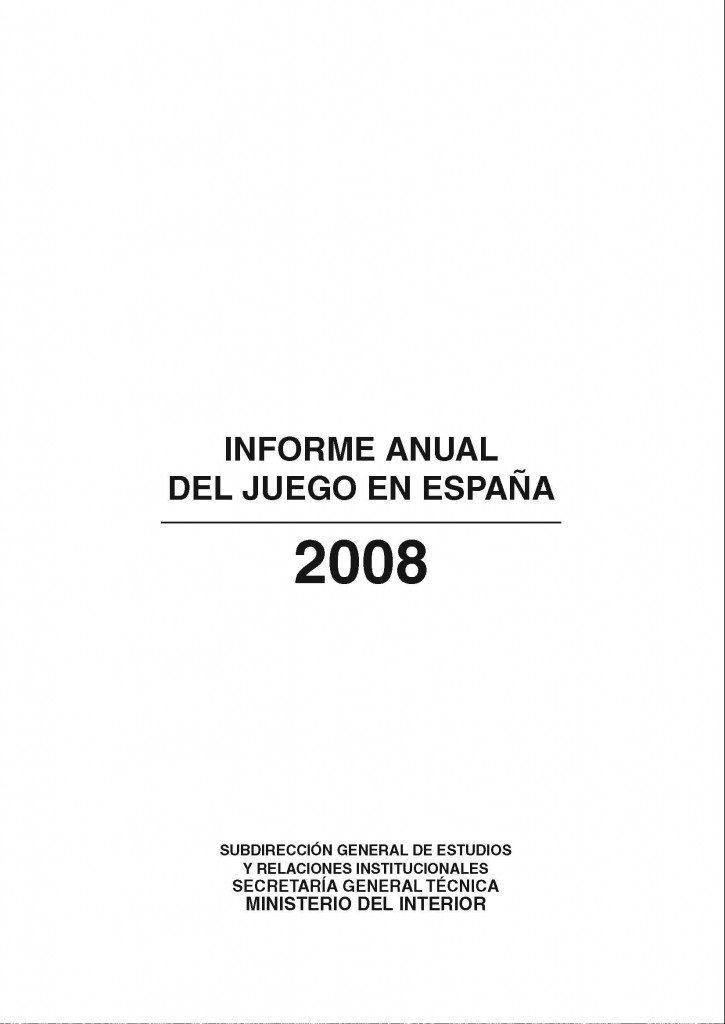 El Ministerio del Interior presenta, un año más, la edición del Informe Anual del Juego en España correspondiente al año 2008, en el que se incluyen los datos estadísticos relativos al juego, tanto público como privado.